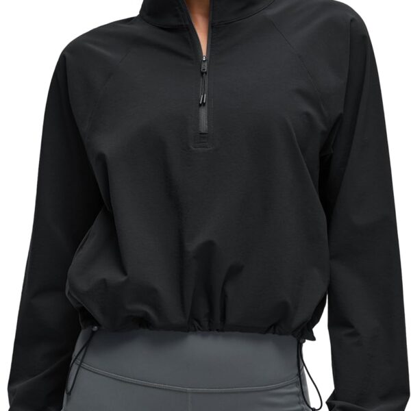 CRZ YOGA Drawstring Bottom Workout Jackets for Women – Half Zip Pullover Cropped Workout Outdoor Tops with Pockets