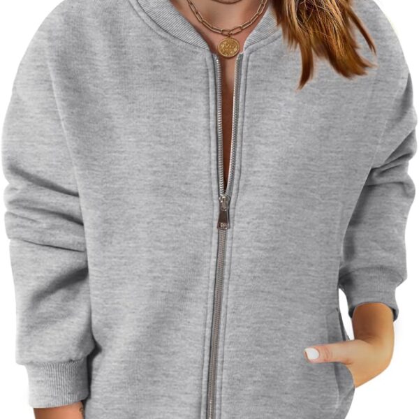 MEROKEETY Womens Long Sleeve Zip Up Sweatshirts Jackets Casual Loose Outwear with Pockets