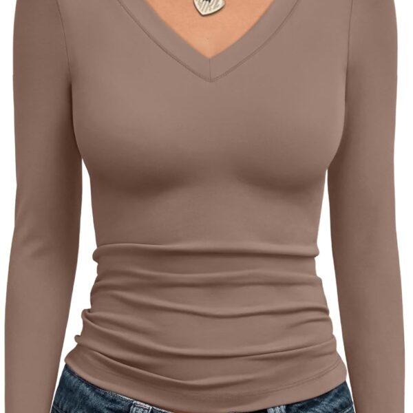 ATHMILE Womens Long Sleeve Shirts Pleated Crew Neck Casual Fall Fashion Ladie Tops Loose Fit Spring Clothes Beach Vacation
